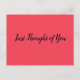 Klassi, men enkelt vykort för de tillfällen då man har en specifik fleeting tanke på någon och vill "snabbt", låt dem veta. Det kommer säkert att krävas ett mobilt samtal, men detta speciella uppehälle varar hur länge mottagaren vill. Reach ut och överraska någon med din omtänksamhet! Det finns massor av färg och många olika budskap att välja mellan.