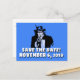 Skriver du vykort till väljare under den här valomgången? Dessa vackra blå vykort har Uncle Sam med en påminnelse om att spara datumet för valet, 6 november 2018. På baksidan av kortet finns text som du kan ändra (till exempel kan du lägga din kontaktinformation eller ditt namn där, så kommer det att visas på alla vykort du köper) eller så kan du ta bort texten så att dessa kort är klara för att du ska kunna anpassa dem helt.