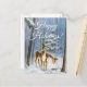 Vackert restaurerad vintagekonst-vykort, två hjortkalvar med fläckar som går genom snön och träden i en sval mörk skog. Helt anpassningsbar.