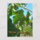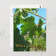 Druvvin - nära grönt lämnar i pressad solsken. Brown backe och grapevinrader i bakbunden form. "Vin Land!" i guld med skugga.