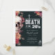 Till decadensens årtionde! Den här blommigten i snyggt är en inbjudan från roligt 30års födelsedag eller så kan du enkelt anpassa i ytterligare tio år (20:e, 40:e osv.) med ett gult skalle med blek aprikoser, svarta och burgiga blommor i djup svart bakgrund. Text "Död till hennes 20-årsjubileum" (anpassade) och plats för all information om party.