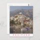 En vacker panoramisk syn på Positano på Amalfi Kusten i Italien tryckt på ett vykort.