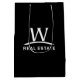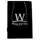 Den glansiga svart gåvan hänger lös med logotypen för vitW-fastigheten
