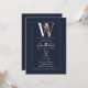 W Monogram senaste initiala, moderna, blå Blommigt Inbjudningar