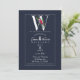 W Monogram Sista Initial Moderna Blå Blommiga Bröl Inbjudningar