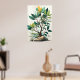 Wabi-Sabi-konstbilden av en stiliserad växt med pulserande grönt och gult löv som växer från sten, omgiven av mjukare, muterade blad. Bakgrunden är ljus och obskyr, där man betonar de detaljerade löven och det vridna grenar.