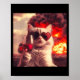 Wacky Cat Holding Wine Selfi With Fire Funny Sungl Poster
