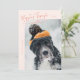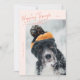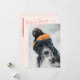 Cute och lustigt julfotopatkort för helgdag till hundägare med en handskriven text som säger "vinter" med ett foto av hund. Bakgrunden är persikor.