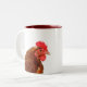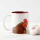 Två tonar "Wakey! Wakey" frukostmugg med designen av ord och två bruna hönor. Från säteribackegåvan spänna.