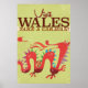 Wales Caravan Vacation vintage affisch. retro Welsh red Dron helgdag-affisch.