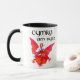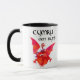 Ett vitt mugg med svart fälg och handtag, med röd drake och slogan "Cymru am Byth" (Wales Forever!). För rugby fläkt och alla kärlek Wales!