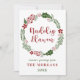 Grön och röd julkrans julkort, med orden God Jul på walesiska: Nadolig Llawen.