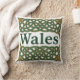 The word Wales sits proud at the center, framed by flowing Celtic knotwork in deep green and deep yellow. The balanced, heraldic layout feels like a rugby banner: calm, strong, and rooted in national tradition.