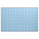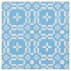 Ett chic tyg med ett fyrvägsmönster av traditionella walesiska Tapestrymotiv i vit på en himmelblåttbakgrund.