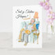 Ett-hjärtad fars dagkort med hälsningen i walesiskt och en äldre man som kopplar av med tidningen i företaget av en katt och en hund; från en handpainted illustration av Judy Adamson.