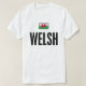 Denna skjorta visar den walesiska flagga i patriotiskt rött, vit och grönt, med det WALESISKA" skriftligt för ord "beneath i svarten sätta en klocka på bokstäver.