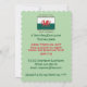 Födelsedagsinbjudan med Wales flagga och orden KELTISKTS BLOD RINNER GENOM MINA ÅDROR OCH IBLAND DERAS WHISKEY. Bakgrunden är ljusgrön. Festdetaljer på framsidan kan anpassas. Baksidan är tom för ditt speciella meddelande, riktning eller vad du än önskar.