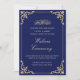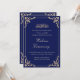 Kampanjen "Luxury Islamic Walima Ceremony". Kortet har en marin blå bakgrund med en dekoration i vintagen guld i hörnet av gräns. Denna produkt är redigerbar utom för arabisk kalligrafi. Det finns två eleganter typsnitt på framkortet. Anpassa all information som skrivs, t.ex. namn, datum och adress. Tomt vitt kuvert ingår. HennesLineForDesign.