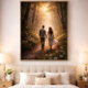 Step into a moment of quiet devotion with "Nature’s Embrace – Walking Toward Forever*. This romantic fine art print captures a couple hand in hand along a sunlit forest path, surrounded by soft greenery, wildflowers, and glowing light filtering through the trees. The scene symbolizes shared journeys, gentle love, and the promise of moving forward together.