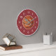 Large round call clock with dark, faux leather-style image for the background. The design features a large basketball placed on this background and overlaid with a name. The name is easily changed with the template. Selecting “Personalize this design” offers you several edit options to easily change the text (wording, plus type font, color, size, position) and to edit the design elements. You may also want to scroll down to the section “Transfer design to a product” for a few suggestions about other items this design can be used on.
