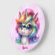 Cute och lycklig encorn ansikte och regnbåge färg tryckt på en klockplatta med namn