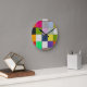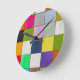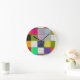 A modern wall clock with a colorful geometric square pattern, blending artistic design with everyday function. Featuring shades of pink, green, blue, yellow, and black, it adds a cheerful accent to any workspace, living room, or reading nook. Perfect for those who love creative decor with practical use.