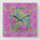 Wall Clock - Vibrant Pink Flowers Fyrkantig Klocka