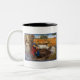 Tea- eller kaffemugg med den digitala photomontageillustrationen av ` Waltzing Matilda', Australien bäst bekant medborgaresongand nation inofficiella nationalsången. Verse och refräng på den omvända sidan