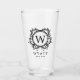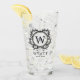 Monogrammat ölglas för din bäste man med sitt första inneslutande i en rund ram som dekoreras med löv över namn och bröllopsfest.