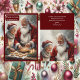 A charming Mrs. Claus baking with Santa Claus Christmas cookies and spreading love. The illustration has the couple wearing winter red robes and baking and getting ready for a Christmas party. In the front has a quote "Warm Cookies Warmer Hugs" and at the reverse are greetings that can be personalized with your own words.