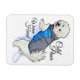 The design depicts a bichon in the snow with a warm jacket, heart and message.
