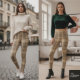 Warm Neutral Tan Plaid Tartan Pattern Leggings