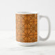 This mug features an intricate lattice‑style tile pattern in rich shades of orange and brown, blending circular floral motifs with geometric symmetry for a refined, handcrafted look.