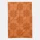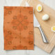 This kitchen towel features a symmetrical tile‑inspired pattern in rich shades of orange and brown, blending floral and geometric elements into a classic, handcrafted motif.