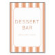 This wedding tabletop sign features a modern, minimalist design with an octagonal central panel framed by vertical peach and cream stripes. The warm color palette of soft peach tones and cream whites creates an inviting atmosphere, while the clean lines and flat colors emphasize simplicity and elegance. The typography includes a bold serif font for "DESSERT BAR" and a friendly sans-serif font for "please take a treat!" conveying a cheerful and welcoming mood perfect for guiding guests to a sweet treat station at your event.