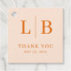 This wedding favor tag features a minimalist design with a peach-colored background and warm orange typography. The layout is symmetrical, showcasing bold serif letters "L" and "B" divided by a vertical line, followed by the phrase "THANK YOU" in slightly smaller text. The elegant and understated style conveys warmth and sophistication, making it perfect for expressing gratitude at your special event. Its clean lines and modern aesthetic ensure it complements any wedding theme beautifully.
