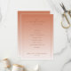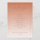 This wedding program features a warm, peach gradient background that transitions from deep coral to pale pinkish-beige. The design is elegantly simple, with a cursive script for the welcoming message and a classic serif font for the ceremony details, creating a harmonious blend of formality and intimacy. Customizable placeholders allow for personalization with names and dates, while the clean layout ensures readability. Perfect for couples seeking a sophisticated yet inviting aesthetic, this program captures the celebratory mood of their special day.