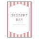 This wedding tabletop sign features a charming design with vertical soft pink and white stripes, creating an elegant frame around the central label. The vintage-inspired plaque is outlined in black, housing bold serif text that reads "DESSERT BAR" and a friendly invitation below. Its classic typography and warm color palette evoke a welcoming and nostalgic mood, perfect for inviting guests to indulge in sweet treats at your event. The clean lines and balanced composition ensure it stands out as both stylish and functional decor.
