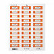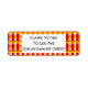 Dessa returetiketter har en Art Deco-design av en platta med tjockt och tunt linjer i rött, orange och gult.
