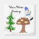 Snygg vinter hälsning... snögubbe på ett svamp...