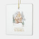 Add a touch of warm winter charm to your holiday décor with this Cozy Cottage Ceramic Ornament. Featuring a soft watercolor snowy house and elegant typography, this ornament makes a perfect keepsake for the season.