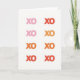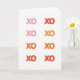 This greeting card shows eight “XO” letters arranged in a 4x2 grid on a white background. Each “XO” is set in a simple, thick letter style, making the shapes easy to read at a glance. The colors shift from soft blush pink to warm orange, then deeper terracotta, and finally a coral red, moving across the grid like a gentle build of feeling. There aren’t any characters or objects, just the repeating “XO,” which keeps the focus on hugs and kisses. The only text is “XO,” and it sits centered in each grid space, with no extra words around it. It feels meaningful because the gradual color change can match how love grows—from quiet care to stronger, heartfelt affection 🥰. This is a sweet choice for a partner or a close friend when you want to say a lot without writing a long note ❤️.