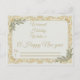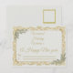 This elegant standard postcard features a classic design with a touch of modern luxury. The front showcases the message "Warmest Holiday Wishes & A Happy New Year" framed by intricate, vintage-style gold leaf scrollwork and delicate sage green foliage. Printed on our paper, this postcard offers a soft, eggshell texture and 18 pt weight for a high-quality, natural feel. Perfectly sized at 5.6" L x 4.25" H (qualified USPS postcard size), it’s the ideal choice for sending timeless, sophisticated holiday cheer to friends and family.personaliz
