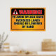 Add this funny poster for some laughs in your bathroom! It reads "Warning! To Avoid Splash-Back Oversized Loads Should Be Lowered By Hand" on a very cool warning sign black and gold/orange background and includes a little icon depicting a toilet and a warning symbol. If you buy this poster you are very very cool. Or weird. Or sick. Or maybe all 3, but we like you.