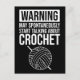Warning - May Spontaneously Start Talking About Crochet. This funny crocheting lover accessory is a great idea for the crocheter in your life. Perfect for women, men, boys, girls, teens & kids who love to crochet & craft, and love yarn! If crocheting is your hobby, you're a yarn lover and you love crafting with a crochet hook and balls of yarn, then this crocheter design is for you! Includes a graphic of a crochet hook with a ball of yarn.