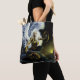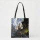Vit ängelkrigare med vit vingar. Området är redo med vapen, svärd och sköld