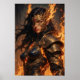 This dynamic artwork portrays a battle-hardened warrior engulfed in flames, symbolizing resilience and fiery spirit. A bold statement for any space.