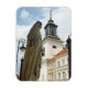 Warszawa, Polen: en staty utanför den Heliga spritens kyrka. I bakgrunden är St Hyacinths kyrka i Freta Street i Gamla staden.