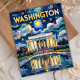 Denna målning i Van Gogh-stil föreställer Washington DC med Lincolnmonumentet upplyst under en virvlande natthimmel, med reflexer som skimrar i den ikoniska poolen utanför Capitolium. Impressionistiska penseldrag frammanar stämningen i Den stjärnbeströdda natten, medan vintage-nyanser och retro-texturer skapar en nostalgisk vy över en av Amerikas mest besökta landmärken.
