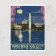 Washington City, resevykort. Vita huset och monumentet upplyses av en reflektion från fullt måne och vatten, som är inramad av ett blad.